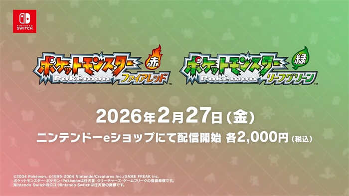 The Pokémon Company 于今日(2/20)宣布,《宝可梦火红》以及《宝可梦叶绿》Nintendo Switch 版将于2 月27 日晚间发售,于台湾时间同日22:00 公开的「Pokémon Presents」播出结束后开放下载。 本作是把2004 年在Game Boy Advance 发售的《宝可梦火红/ 叶绿》在Nintendo Switch 上完整重现的作品。因此,语言也沿用当时版本,游戏内不支援更改语言。 《宝可梦火红/ 叶绿》是以《宝可梦红/ 绿》为基础全面更新图像,于2004 年针对Game Boy Advance 推出的重制作品。作品中新增了原版不存在的「七岛(ナナシマ)」。 目前两款作品的商店页面均已公开,价格各为含税2000 日圆。另外,在海外的商店页面上,也存在两作皆「预计支援《Pokémon HOME》」的记述。 此外,预定于日本时间2 月28 日上午10 时发售的「特别版」中,似乎会附上游戏本篇、重现当年设计的包装,以及玻璃制的精灵球摆饰。该特别版分为《火红》与《叶绿》版本,价格各为含税1 万9800 日圆。